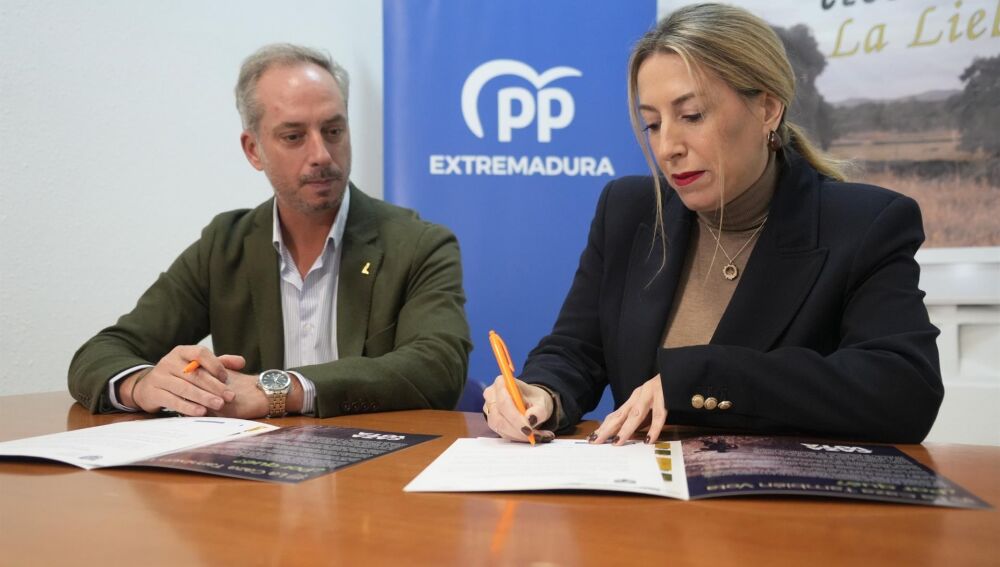 La presidenta del PP de Extremadura ha firmado un Pacto por la Caza con Fedexcaza.
