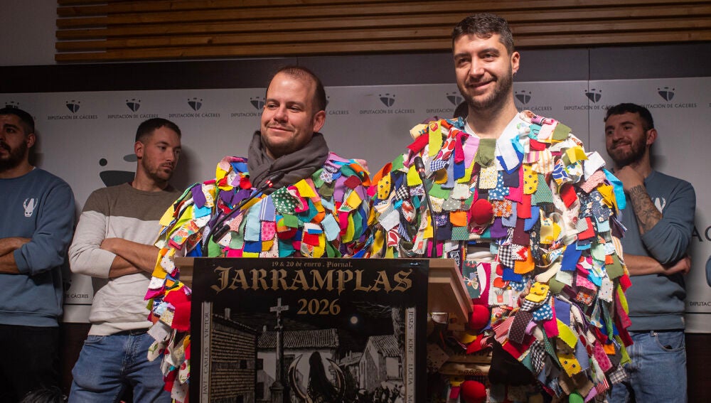 Marcos Moreno y David Ramos, que aunque ya se habían vestido de Jarramplas en otras ocasiones, serán este año los piornalegos que den vida a los dos Jaramplas principales en esta edición 2026. “Orgullo, satisfacción y agradecimiento” son los adjetivos con los que Moreno ha calificado como se siente al ser Jaramplas, “para mí representa muchísimo orgullo; también muchísimo respeto por la tradición, por la gente que ya ha encarnado estas fiestas y agradecimiento a la gente nos rodea por su apoyo”.