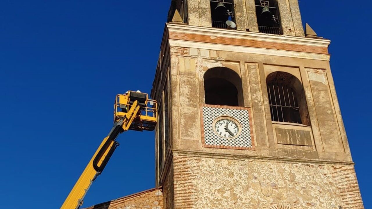Las actuaciones de restauración incluyen intervenciones, como la limpieza de los paramentos exteriores, la retirada de nidos de cigüeña y la restauración de los revestimientos cerámicos del chapitel y las cornisas, según ha precisado la Junta en nota de prensa.