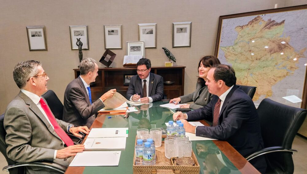 El consejero de Economía, Empleo y Transformación Digital, Guillermo Santamaría, se ha reunido hoy con el Fiscal de Sala coordinador de Seguridad y Salud en el Trabajo de la fiscalía general del Estado, Ángel Javier Muñoz; el fiscal superior de Extremadura, Francisco Javier Montero de Juanes, y Juan Tejada, fiscal delegado autonómico en Siniestralidad Laboral, para avanzar en el impulso de un nuevo convenio para establecer protocolos de actuación y de colaboración enfocados a reducir la siniestralidad laboral