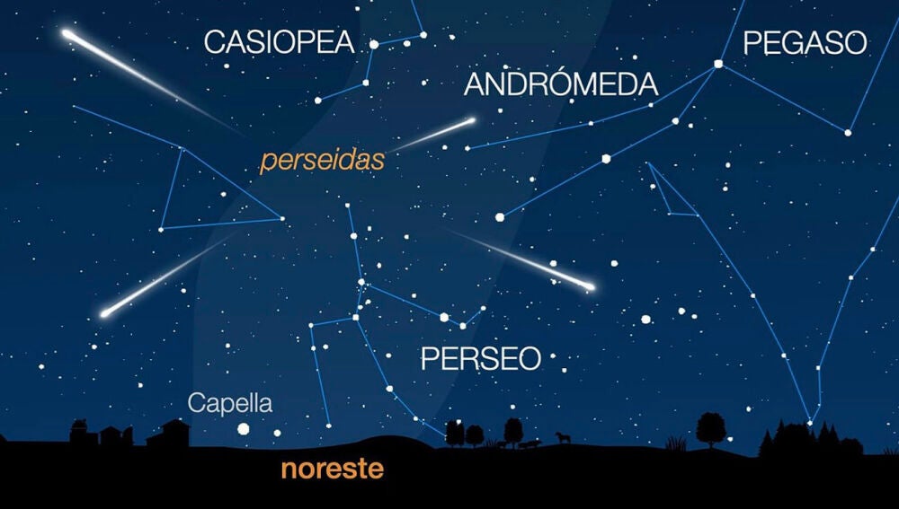 El punto radiante de las Perseidas, de donde parecen originarse los meteoros, está cerca de la estrella Mirfak (a Persei), en la constelación de Perseo.