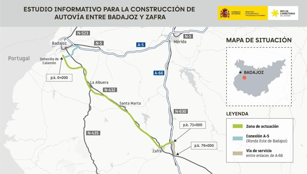El Ministerio de Transportes y Movilidad Sostenible ha aprobado el expediente de información pública y definitivamente el estudio informativo para la construcción de una autovía entre Badajoz y Zafra, siguiendo el corredor de la N-432.