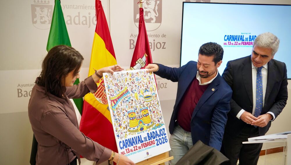 El Ayuntamiento de Badajoz ha designado como cartel del Carnaval 2026 un diseño de la joven Teresa Solo de Zaldívar, propuesta de estilo 'Buscando a Wally' entre cuyos personajes se encuentra el propio alcalde de la ciudad, Ignacio Gragera.