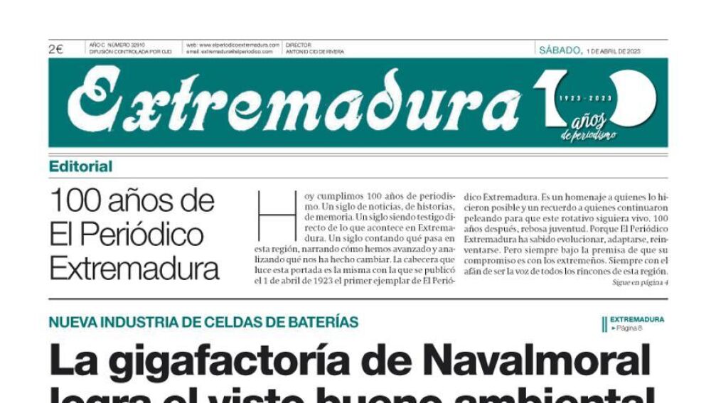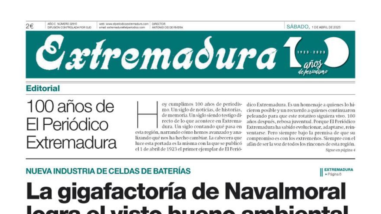 El Periódico Extremadura inaugurará este lunes a las 11,00 horas junto al Palacio de La Generala en Cáceres, un monolito conmemorativo del centenario del rotativo.
