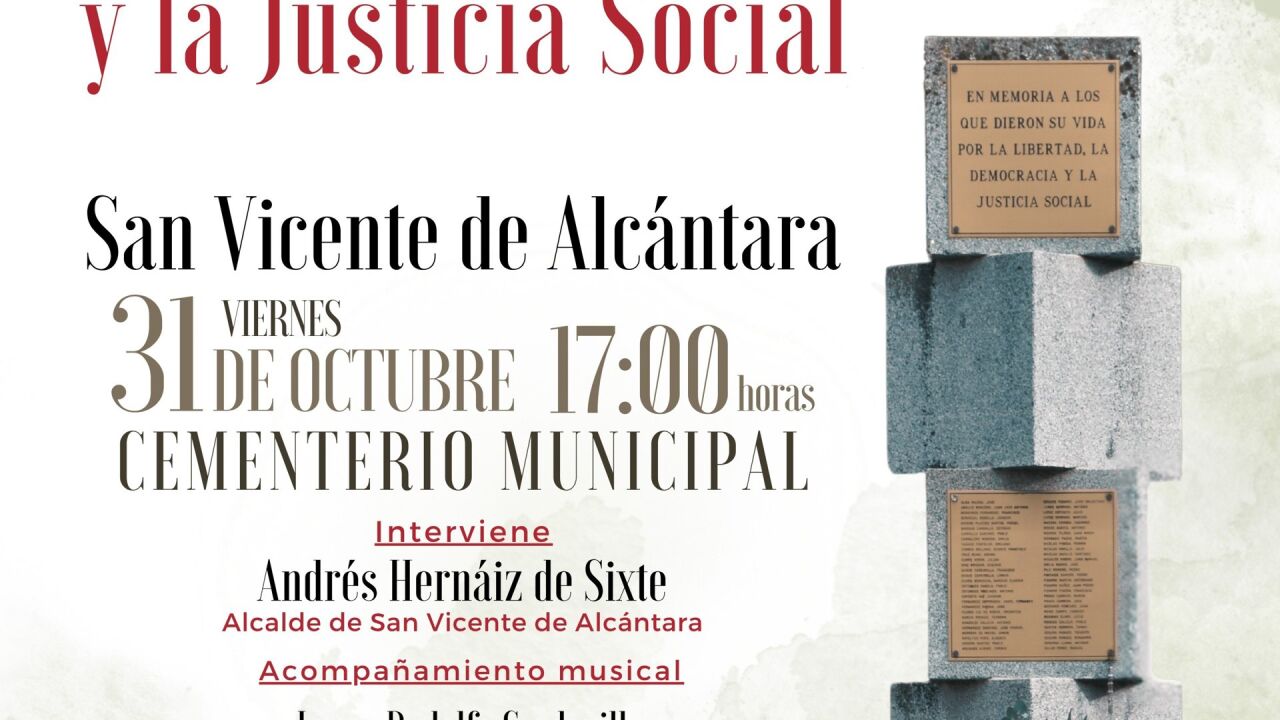 Víctimas de la Guerra Civil y la represión franquista recibirán el próximo viernes, día 31, en el cementerio municipal de la localidad pacense de San Vicente de Alcántara, un homenaje, a las 17,00 horas.