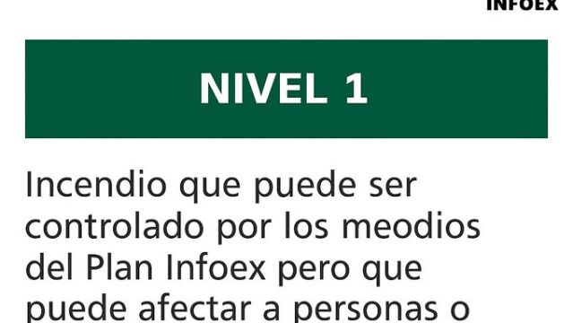 Por último, un incendio forestal declarado este domingo en el término municipal de Talayuela fue declarado durante varias horas de nivel 1 de peligrosidad por su proximidad a viviendas aisladas. Nivel que se desactivó en la tarde de ayer.