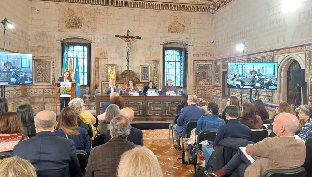 Tena Aragón ha participado en la inauguración del curso, que se celebra los días 11 y 12 de marzo en la Sala Capitular de la Hospedería de Guadalupe (Cáceres), junto a la vocal del Consejo General del Poder Judicial (CGPJ), Inés Herreros Hernández, y la secretaria general de Igualdad y Conciliación de la Junta de Extremadura, María del Ara Sánchez Vera. Además, como anfitrión, también ha intervenido el padre guardián del Real Monasterio de Guadalupe, Fray Vidal Rodríguez.