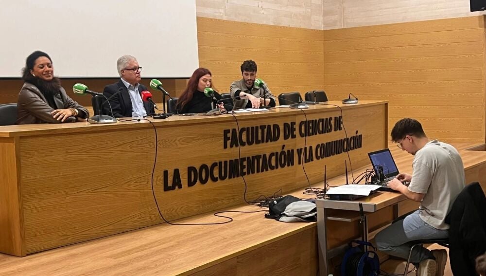 La mesa de debate ha reunido también a profesionales de referencia del panorama radiofónico y audiovisual extremeño, como María Hurtado y Álex Carpallo, de Canal Extremadura, así como Miriam Garriga de la COPE y José Emiliano Barrena de la cadena SER, antiguos alumnos de la facultad.