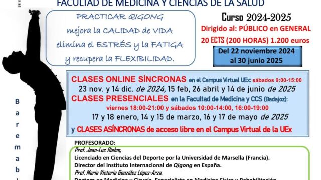 La Universidad de Extremadura (UEx) desarrolla hasta el próximo 29 de junio un curso que permite a los asistentes aprender las bases y desarrollar capacidades para poder practicar y enseñar el ejercicio Qigong para el bienestar.