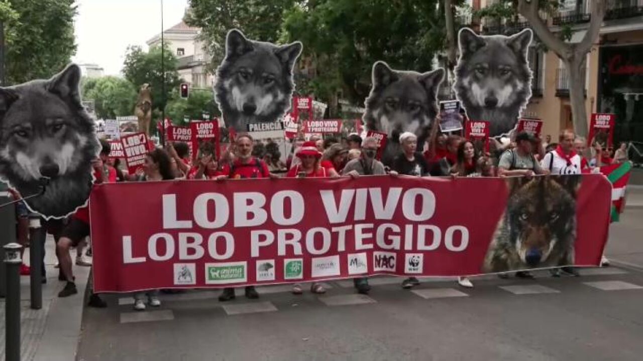 Bajo el lema "El lobo se defiende", la protesta ha partido desde Atocha y ha reunido a voces de todo el país comprometidas con la conservación del lobo.