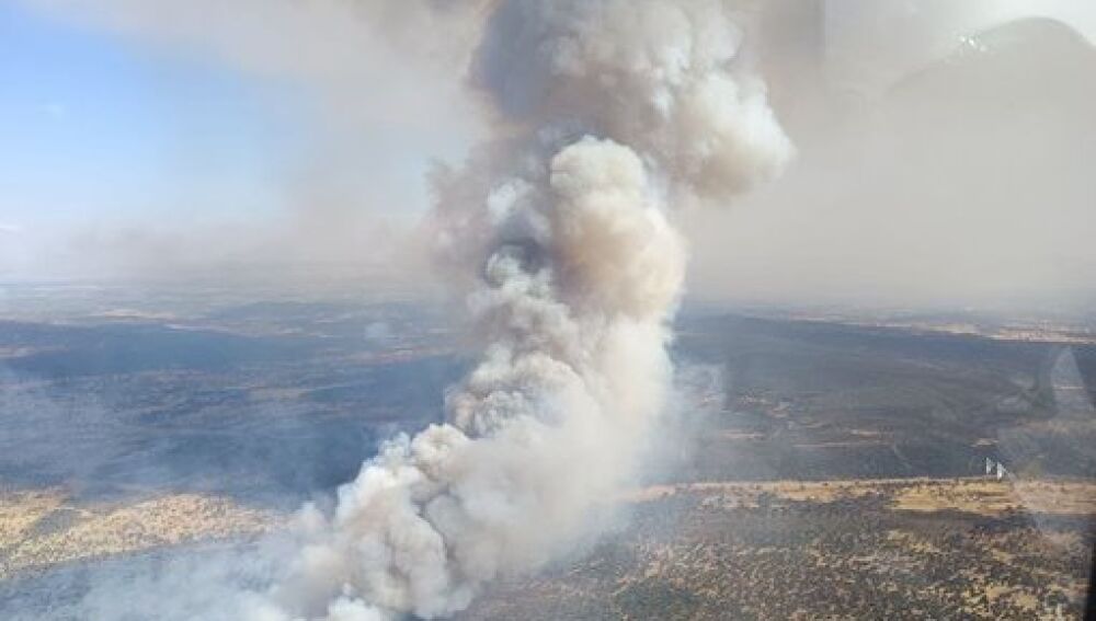 Respecto al de Arroyomolinos, están actuando en el mismo 7 unidades de bomberos forestales, 8 medios aéreos, 2 equipos de maquinaria pesada, 2 agentes del medio natural, 1 técnico y efectivos del Ministerio de Transición ecológica.