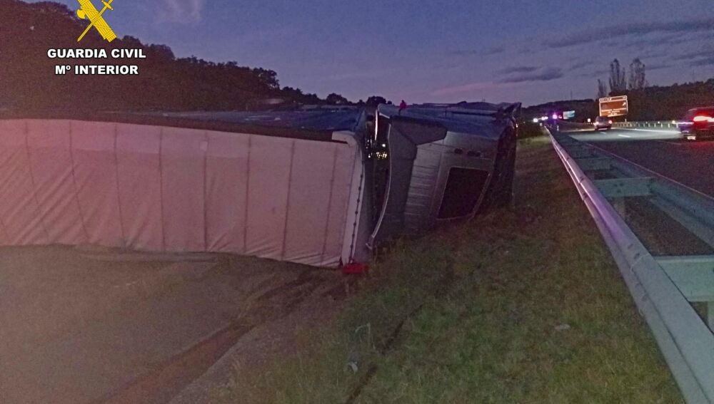 El suceso ha ocurrido sobre las 18,00 horas de este miércoles, cuando un camión articulado ha volcado ocupando los dos carriles, según informan fuentes de la Guardia Civil.
