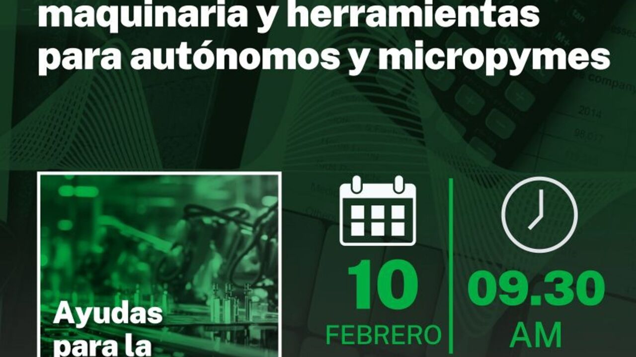 Esta sesión informativa online explicará de forma detallada cómo acceder a subvenciones de hasta el 50 por ciento para inversiones comprendidas entre 1.000 y 25.000 euros, destinadas a la adquisición de maquinaria, herramientas y bienes de equipo, con el objetivo de "mejorar la productividad, la capacidad productiva y la innovación de los negocios en Extremadura".