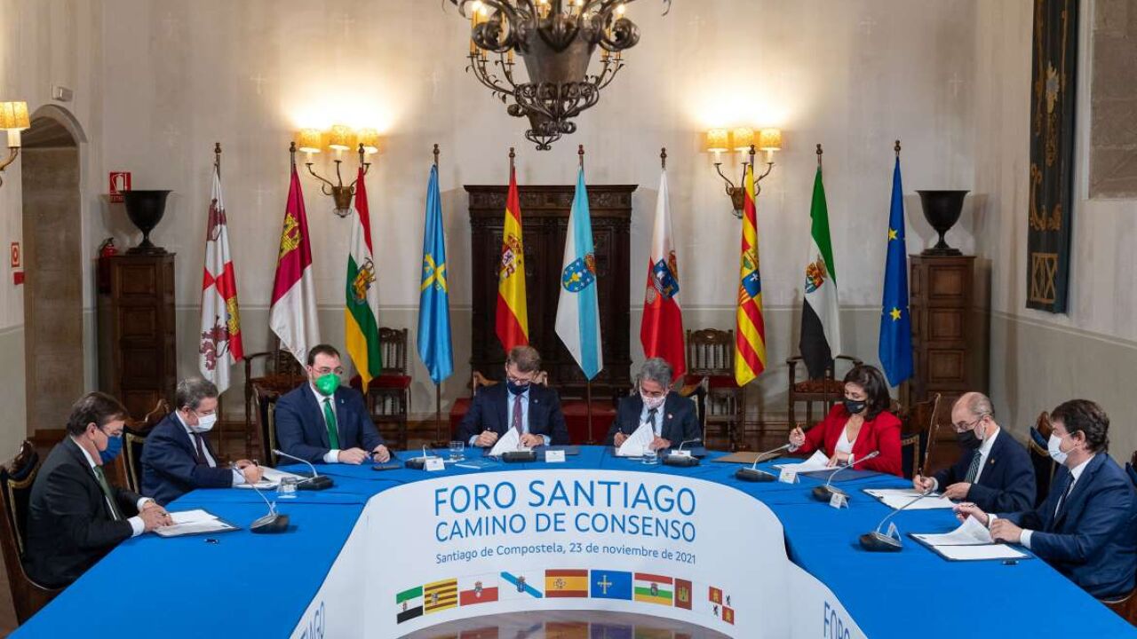 Los ocho presidentes autonómicos reunidos este martes en la cumbre de Santiago de Compostela, entre ellos Guillermo Fernández Vara, han firmado una declaración institucional con un total de 35 puntos en el que han fijado una posición común en materia de financiación autonómica y despoblación, entre otras materias. Se trata de una apuesta por el Estado de las Autonomías, la búsqueda de consenso y, sobre todo, la voluntad de poner al frente de la negociación de la nueva financiación autonómica la despoblación y llevar los servicios públicos esenciales a todo el territorio. Así lo han rubricado los presidentes de Galicia, Castilla y León, Castilla-La Mancha, Aragón, Asturias, La Rioja, Cantabria y Extremadura. En su comparecencia, el presidente de la Junta de Extremadura, Guillermo Fernández Vara, ha destacado que el encuentro es un signo de madurez de Estado de las Autonomías para compartir lo que les preocupa y respetar lo que no comparten. Vara insiste en que antes de abordar la nueva financiación hay que saber qué Sanidad queremos y cómo mantenerla, con una pandemia que la ha puesto en stress. El presidente extremeño destaca que el problema de la despoblación no sólo es de una parte de un país, que la natalidad no se recupera de la noche a la mañana, que hay que atraer inmigración y para ello hace falta industrias y un empleo y vivienda decente. El anfitrión, el presidente gallego Alberto Núñez Feijoo, ha calificado este acuerdo como una buena noticia para todos.