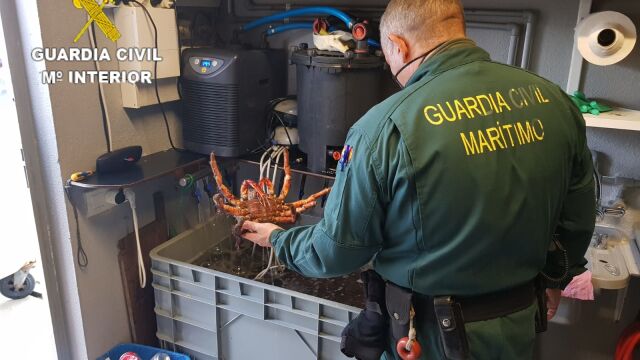 La Guardia Civil procedió a la inspección del interior de dicho galpón localizando un bin de plástico gris con un circuito de circulación de agua salada a modo de vivero en cuyo interior había 41 kilogramos de centolla viva que carecía de trazabilidad, así como de autorización y número de registro sanitario. En la misma noche miembros del Servicio Marítimo localizaron dos sacos fondeados con 28,5 kilogramos de centolla sujetos con mosquetones metálicos a un cabo amarrado a una embarcación. Por tales hechos se procedió a la confección de las pertinentes denuncias por supuestas infracciones a la Ley de Pesca de Galicia por la tenencia y almacenamiento de productos procedentes del marisqueo sin ningún tipo de trazabilidad, y por la tenencia y almacenamiento de productos procedentes del marisqueo sin autorización. La Guardia Civil reintegró las centollas al mar al encontrarse vivas.