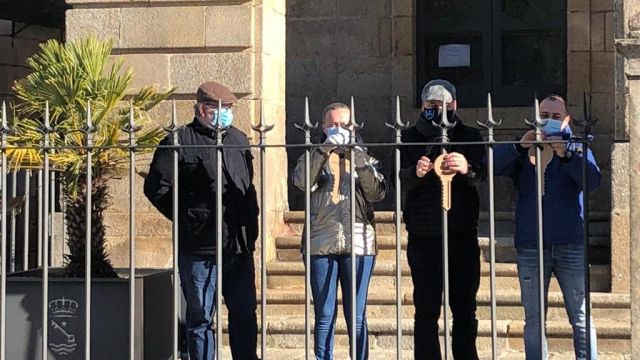 Fixérono acudindo á Casa do Concello, “onde colgamos simbolicamente as chaves dos nosos locais, para que Alberto Núñez Feijoo as recolla”, explican desde Acisa o seu presidente e o vicepresidente, Francisco Iriarte e Roberto Rivas.