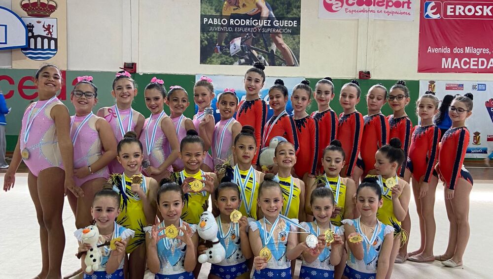Por outra parte tamén se disputaba en Maceda a segunda fase provincial dos niveis promoción e prebase onde as nosas individuais e conxuntos amosaron o seu traballo e o seu nivel de preparación no camiño ao campionato autonómico que terá lugar en xuño. En individual Noa e Sabela en alevín e Carlote e Alexia en infantil foron ouro e prata respectivamente. Nos conxuntos os cinco conxuntos pavillonistas subiron ó máis alto do pódium: benxamín, alevín, xuvenil e máster en promoción e o cadete prebase.