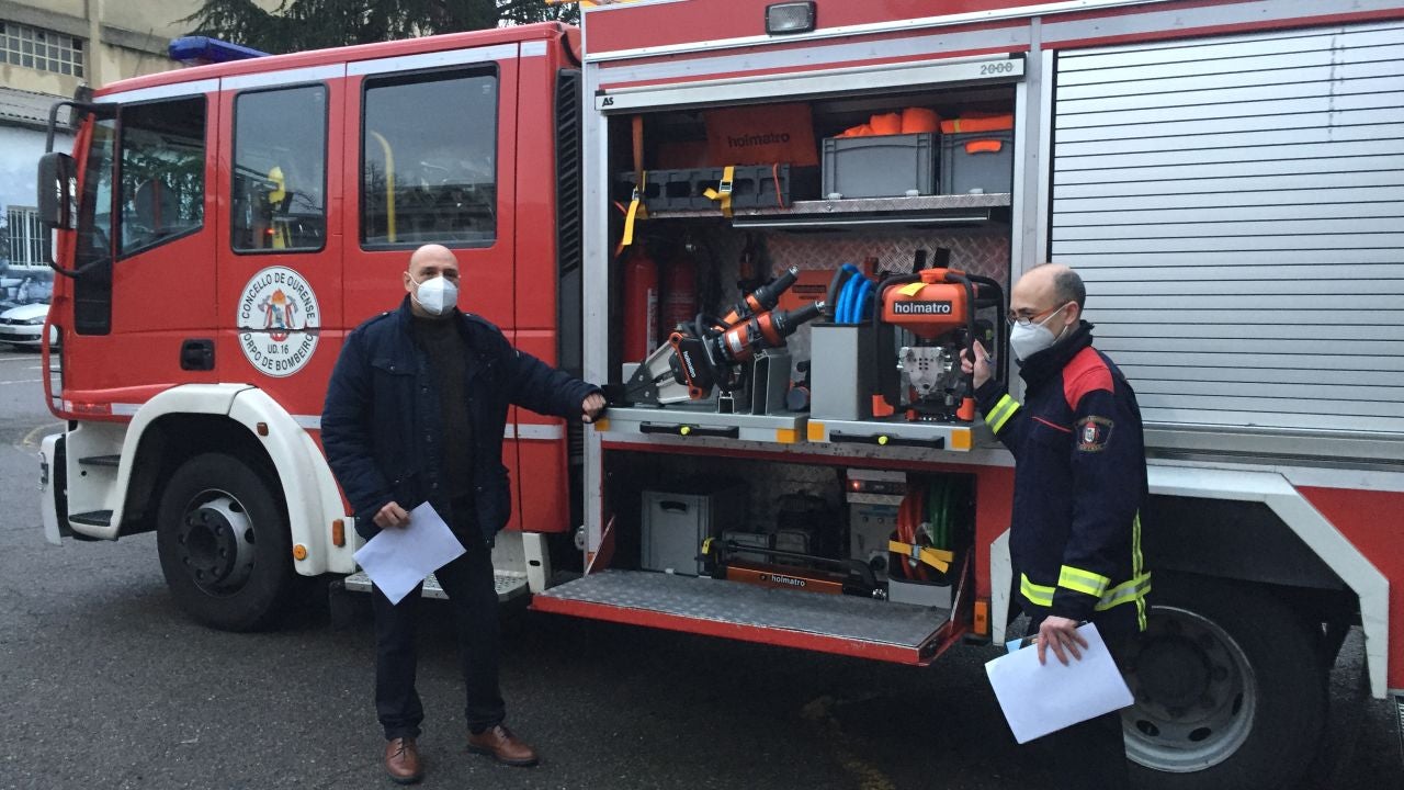 O servizo de Bombeiros do Concello de Ourense conta cun novo equipo de excarceración de altas prestacións. O concelleiro de Seguridade Cidadá, Armando Ojea, e o xefe do servizo de Bombeiros, José Benito Álvárez, asistiron esta mañá á entrega da nova unidade, subministrada pola empresa Incipresa, que supuxo un investimento de 75.533,05 euros por parte do Concello. O equipo incorpora as máis modernas prestacións do sector, que permitirán reforzar a seguridade, axilidade e eficiencia nas intervencións de rescate que realizada o corpo de bombeiros, ao tratarse dunha ferramenta que destaca por ser moi compacta, lixeira e potente.