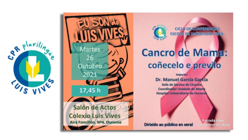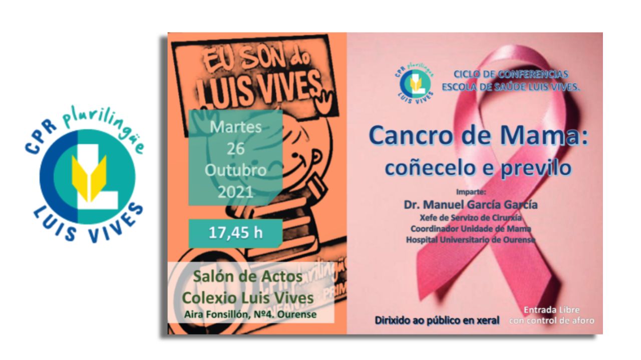 O vindeiro martes 26 de outubro ás 17:45 terá lugar a 1ª Conferencia dentro do ciclo “CONFERENCIAS ESCOLA DE SAÚDE LUIS VIVES”.