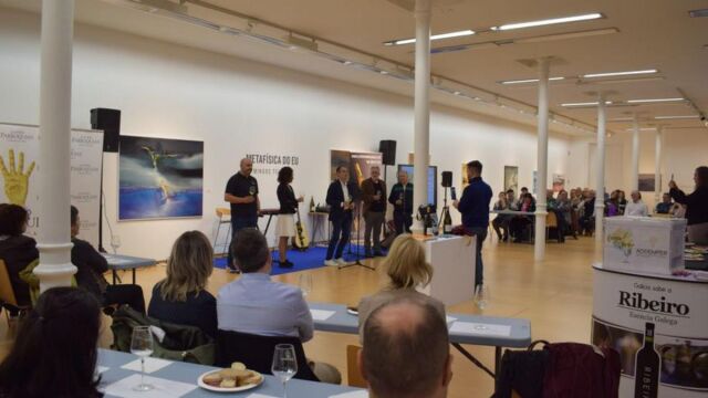 O C.R.D.O. Ribeiro presenta a novena edición do ciclo Cata a Arte, que terá lugar no Centro Cultural Marcos Valcárcel de Ourense os xoves 2, 9, 16, 23 e 30 de novembro de 20.00 a 22.00 horas e que inclúe presentacións e degustacións de catro adegas da D.O. Ribeiro, acompañado de accións culturais paralelas como música, poesía ou maxia e un acto especial con cata guiada dos viños institucionais do Consello Regulador. O acto contou coa presenza do presidente do C.R.D.O. Ribeiro, Juan M. Casares, o director do Centro Cultural Marcos Valcárcel, Francisco González e o presidente de ALCER Ourense, Miguel Ángel Quintas.