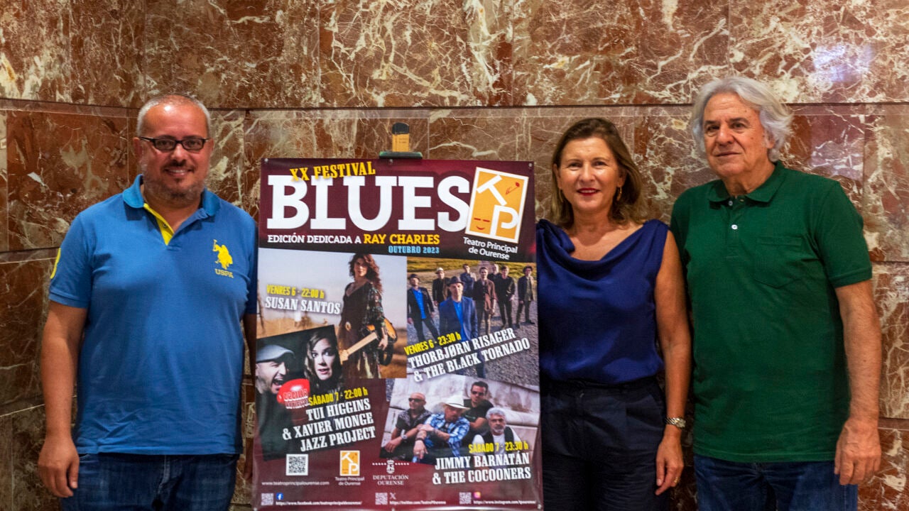 O Teatro Principal acollerá os días 6 e 7 de outubro a vixésima edición do Festival Internacional de Blues, patrocinado pola Deputación de Ourense, que estará dedicada a Ray Charles. Esta nova edición traerá música en directo ao Principal para que o público amante do blues e do jazz poida gozar dun variado elenco artístico de diversas estéticas musicais. O festival foi presentado esta mañá no Teatro coa presenza do vicepresidente segundo da Deputación, César Fernández; a directora do Teatro, Olga Mojón; e o promotor do evento, Alfonso Cito.