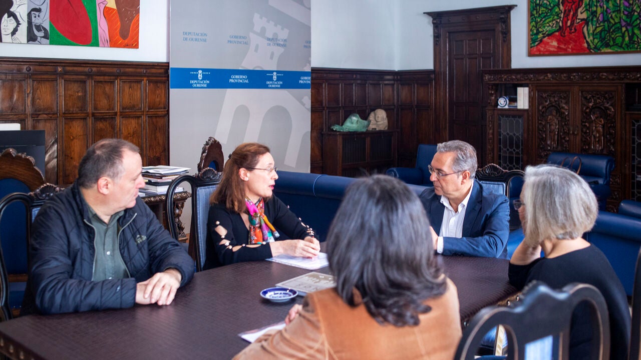 O presidente provincial, Luis Menor, recibiu na Deputación a unha representación da Escola de Enfermería de Ourense, coa súa directora María Milagros Fernández á fronte, acompañadas polo responsable da Plataforma Pro-Campus de Ourense, Claudio Cerdeiriña.