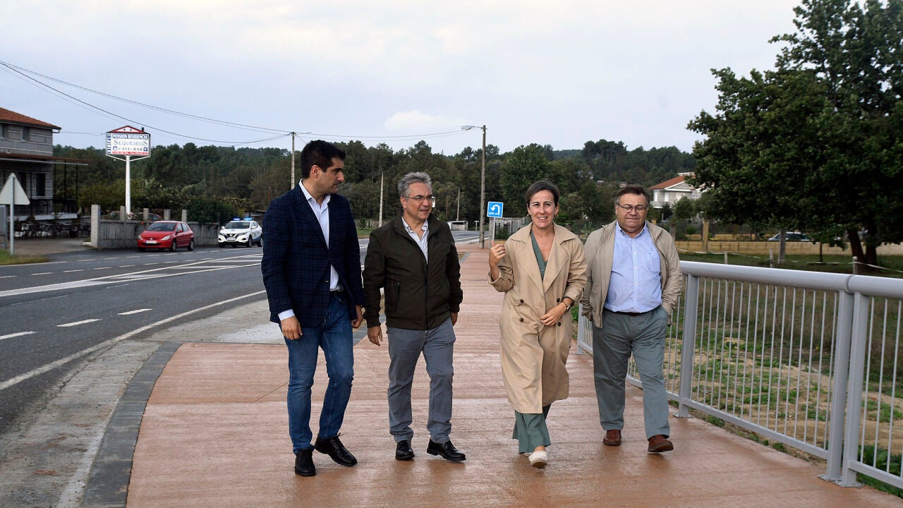 Vázquez Mourelle, xunto co delegado territorial da Xunta en Ourense, Gabriel Alén; o alcalde e presidente da Deputación, Luis Menor; o alcalde de Paderne de Allariz, Manuel Pérez; e representantes do concello de San Cibrao das Viñas, comprobou hoxe o resultado das obras destes dous novos itinerarios executados pola marxe esquerda da estrada autonómica OU-101.