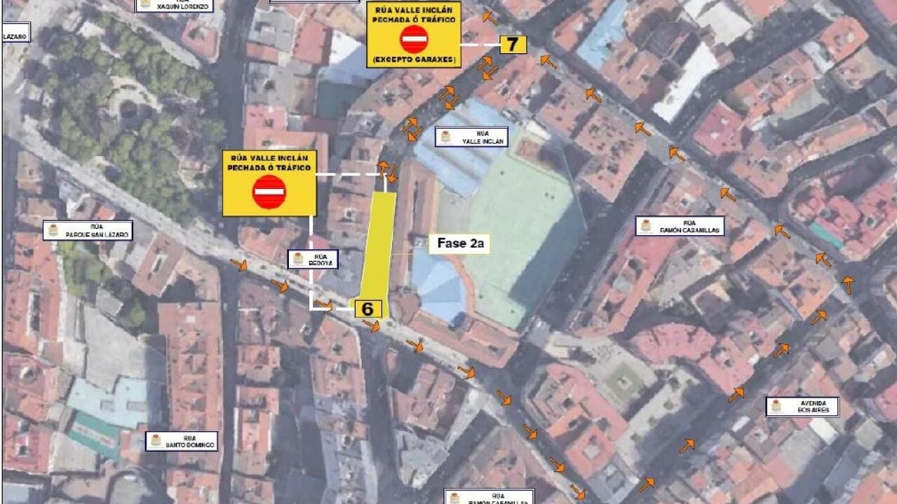 Con motivo da Fase 2 das obras de acondicionamento e mellora das rúas Valle Inclán, Ramón Cabanillas e Bedoya -na intersección con Valle Inclán e Avda. de Bos Aires- , o Concello procederá a realizar cortes de tráfico diversos segundo avancen cada unha das fases, polo que en xeral recoméndase non acceder co vehículo a toda a zona e, no caso de facelo, empregar as diferentes alternativas propostas: