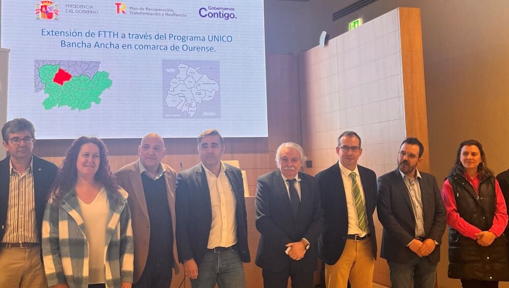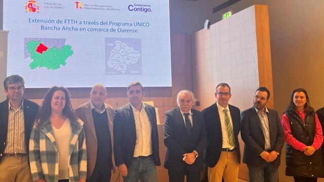 Ata alí viaxou xunto ao xefe de Inspección de Telecomunicacións da provincia, Enrique Sanmartín, quen informou aos alcaldes e representantes institucionais dos doce concellos da comarca -Ourense, Barbadás, Amoeiro, Vilamarín, Esgos, Taboadela, San Cibrao das. Viñas, Nogueira de Ramuín, Pereiro de Aguiar, Coles, A Peroxa e Toén- do estado de cumprimento do plan, situando os concellos da comarca como unha zona de gran conectividade e poñendo en valor este compromiso do Goberno de Pedro Sánchez. para cumprir cos obxectivos do reto demográfico. Ademais, durante o acto, a nova operadora encargada de implantar o servizo na provincia, representantes da compañía de telefonía Avatel Telecom, que recollen o bastón de mando de Telefónica, presentaron aos alcaldes a súa proposta para que poidan resolver dun xeito máis áxil. xeito os trámites necesarios para a ampliación da liña.