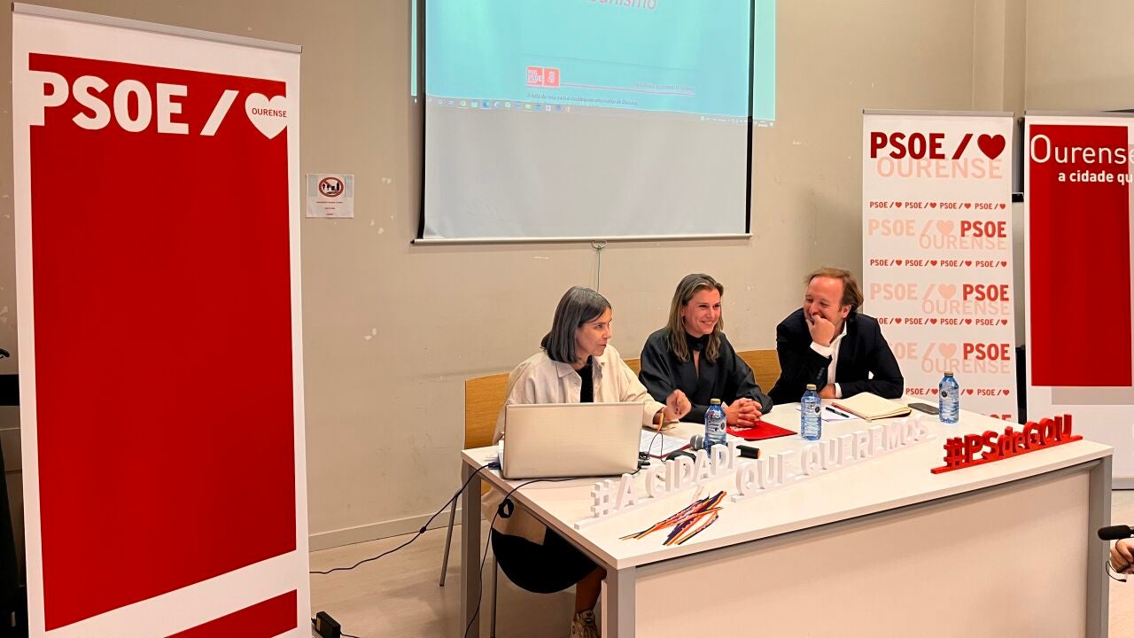 A secretaria xeral da Comisión executiva municipal do PSdeG-PSOE de Ourense, Natalia González, xunto con Mercedes Rosón, concelleira de urbanismo, vivienda, cidade histórica, acción cultural e igualdade do Concello de Santiago de Compostela e Francisco Díaz Gallego, concelleiro de urbanismo, vivienda, infraestruturas e mobilidade do Concello de A Coruña, analizaron os retos urbanísticos do futuro de tres grandes cidades galegas no encontró foro debate “Ourense a cidade que quedaremos” realizado esta tarde no centro cívico de A Ponte.