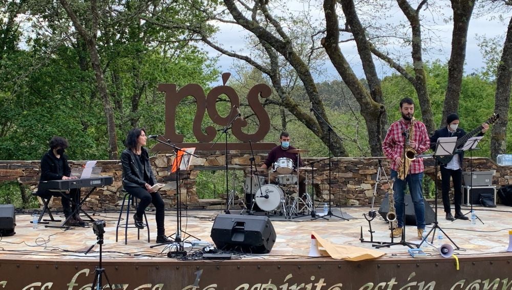 O Día das Letras Galegas tivo hoxe o gran acto de lembranza da poeta Xela Arias, á quen se lle dedica este ano a efeméride da nosa cultura. Jazz e poesía mesturados para dar forma no espazo único de natureza e intelectualidade que conforma a Insua dos Poetas (na Esgueva, Madarnás, O Carballiño). Sobre o escenario, o escritor porteño e ourensán Luis González Tosar destacou a personalidade de Xela Arias como muller e poeta e a súa amizade, para dar paso, de seguido, aos poetas Quico e Rochi Nóvoa, e á banda 4Mal Quarter Jazz, que brindaron ao público o espectáculo de música e palabras titulado “Musicando versos”.