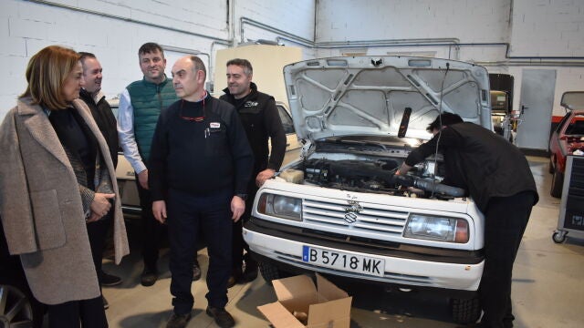 A conselleira de Promoción do Emprego e Igualdade, Elena Rivo, acompañada da secretaria xeral da igualdade, Sandra Vázquez, mantivo un encontro con representantes da Asociación provincial de talleres de reparación de vehículos de Ourense (Atave) e está a visitar varios destes negocios co gallo de analizar as medidas que está poñendo en marcha a Xunta de Galicia para dar resposta á falta de persoal en sectores coma este.