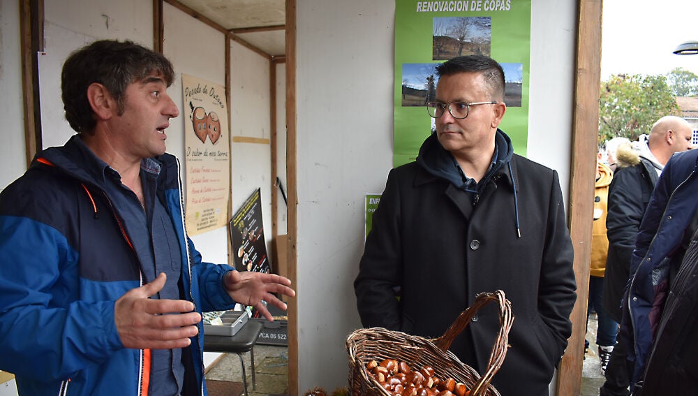 O conselleiro do Medio Rural, José González, acompañado polo director xeral de Planificación e Ordenación Forestal, José Luis Chan, e o delegado territorial da Xunta en Ourense, Gabriel Alén, asistiu á XXVII Festa da castaña e do cogomelo de Riós. Alí reafirmou o seu compromiso co sector da castaña, para o que a Consellería do Medio Rural investirá o ano que vén 4,8 millóns de euros.