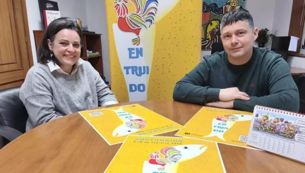 O alcalde de Soutomaior, Manu Lourenzo, e a concelleira de Promoción Económica, Comercio e Hostalería, Rosana Comesaña, presentaron o Entruido de 2026. Esta edición chega pisando forte co seu desfile de comparsas que se celebrará o sábado 7 de febreiro.