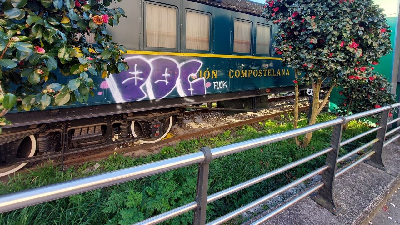 La Asociación Compostelana de Amigos del Ferrocariil califica de "vandalismo y "lacra del siglo XXI" las pintadas que afectan a patrimonio compostelano como en el vagón Verderón