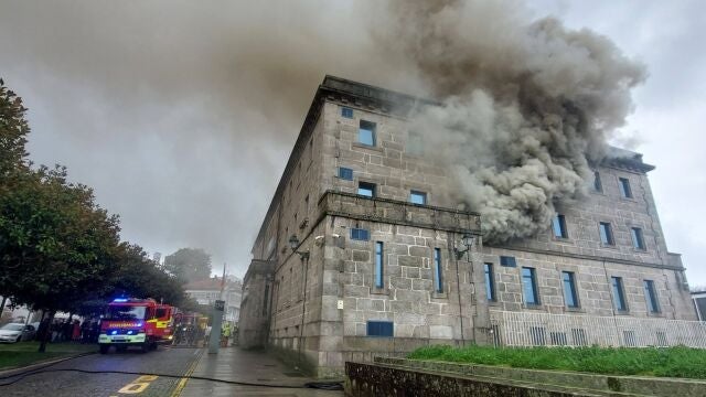 Un incendio originado en la comisaría de la Policía Nacional de Santiago, localizado en una zona de la planta inferior donde había neumáticos almacenados, ha obligado a desalojar el edificio de la avenida de Rodrigo de Padrón y ha causado una intensa nubareda de humo que se ha extendido hacia otros lugares de la ciudad.