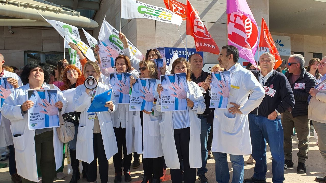 Cerca de 200 profesionales sanitarios del área II de salud se han manifestado a las puertas del hospital Santa Lucía en protesta por la agresión física y verbal a un médico de urgencias por parte de un grupo de personas tras comunicarle la muerte de un familiar.