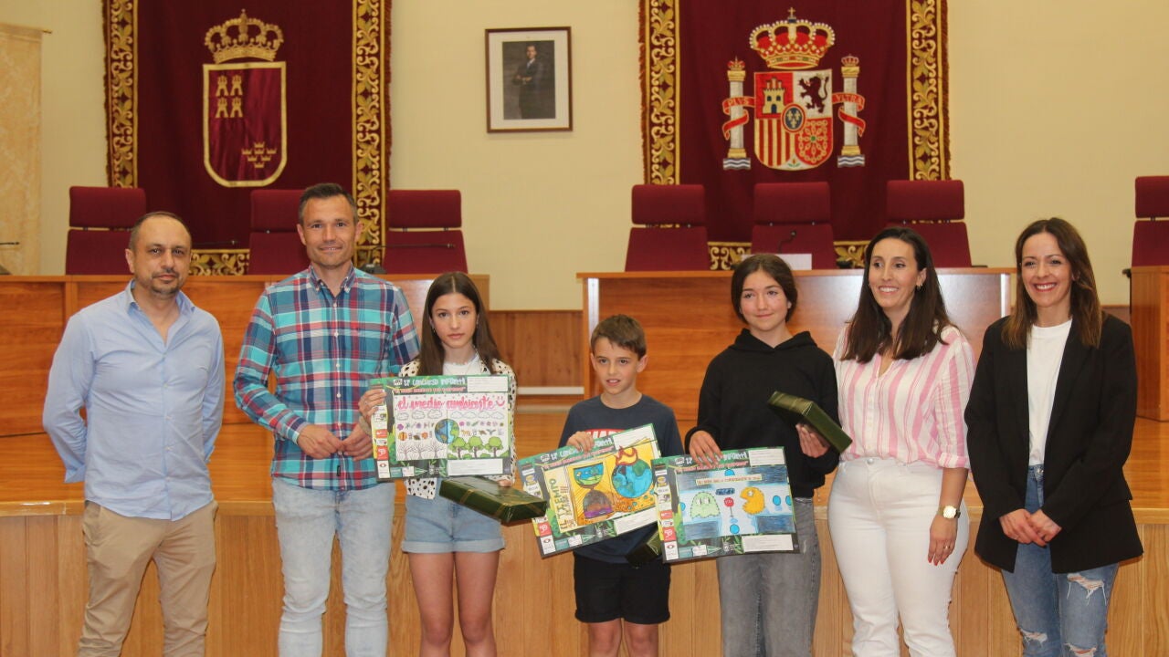 El salón de plenos del ayuntamiento de Yecla fue el lugar donde se realizó la entrega de premios a los tres ganadores. El Corte Inglés, patrocinador del concurso, aportó las tablets con las que han sido premiados los niños ganadores.