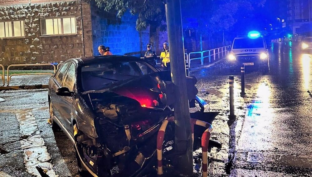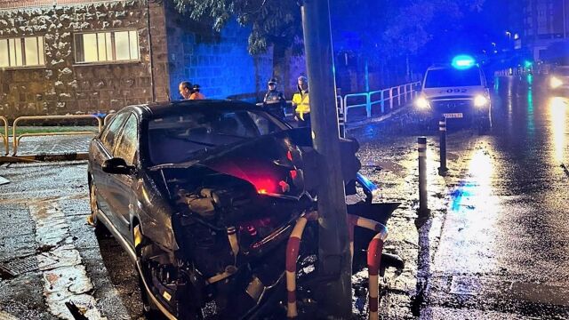 El suceso tuvo lugar a las 2.40 horas del sábado en la Plaza de los Fueros cruce con avenida de Galicia, cuando el conductor y único ocupante de un turismo, procedente de la calle Julián Gayarre y en dirección a la avenida de Galicia, colisionó frontalmente contra un poste semafórico. El conductor, de 33 años, resultó herido leve, sin precisar asistencia médica.
