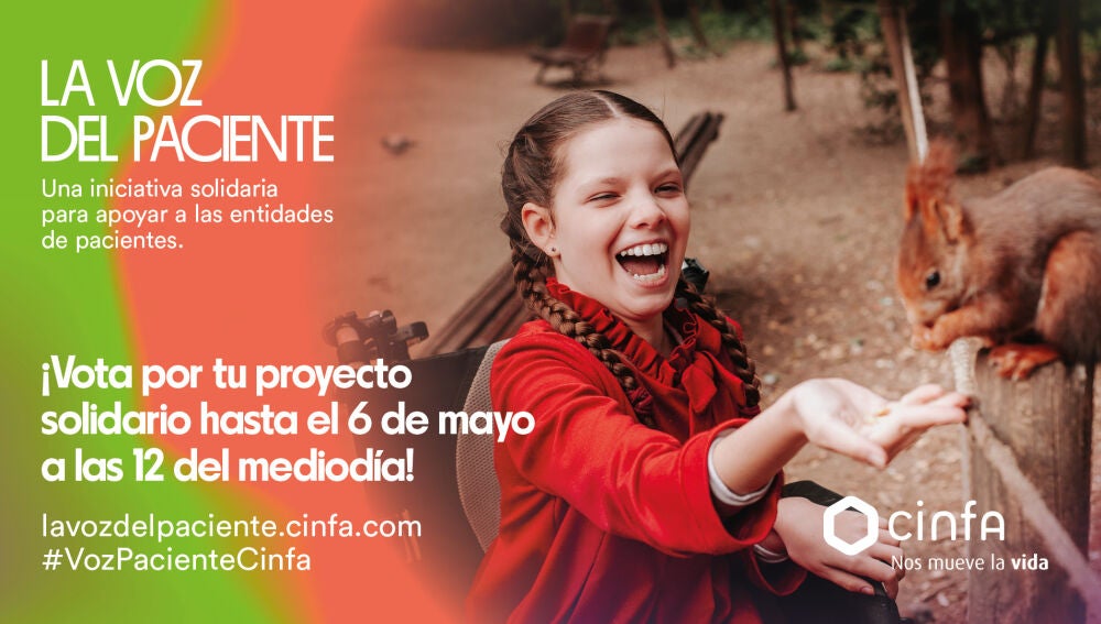 Hasta las 12 del mediodía del 6 de mayo, ya se puede votar a uno de los 436 proyectos presentados por entidades de pacientes de toda España a la quinta edición de ‘La voz del paciente’ de Cinfa. Las cien asociaciones más votadas obtendrán una ayuda de 5.000 euros: 2.500 euros en dos años consecutivos, dado que la acción pasa a ser bienal y Cinfa duplica la aportación económica de las ediciones anteriores. Los programas de intervención directa presentados a la iniciativa comparten el mismo objetivo: mejorar el bienestar físico, mental y emocional de las personas que afrontan una enfermedad o discapacidad, así como el de los familiares que les cuidan. Abarcan una amplia casuística de patologías, tales como el alzhéimer, la diabetes o las enfermedades raras, entre otras, y diversos tipos de discapacidad física, sensorial, intelectual o del desarrollo.