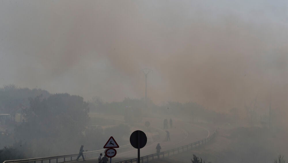 Ocho carreteras de la red secundaria de Navarra se encuentran cortadas a primera hora de esta mañana para facilitar las tareas de extinción de los incendios que azotan la Comunidad foral.
