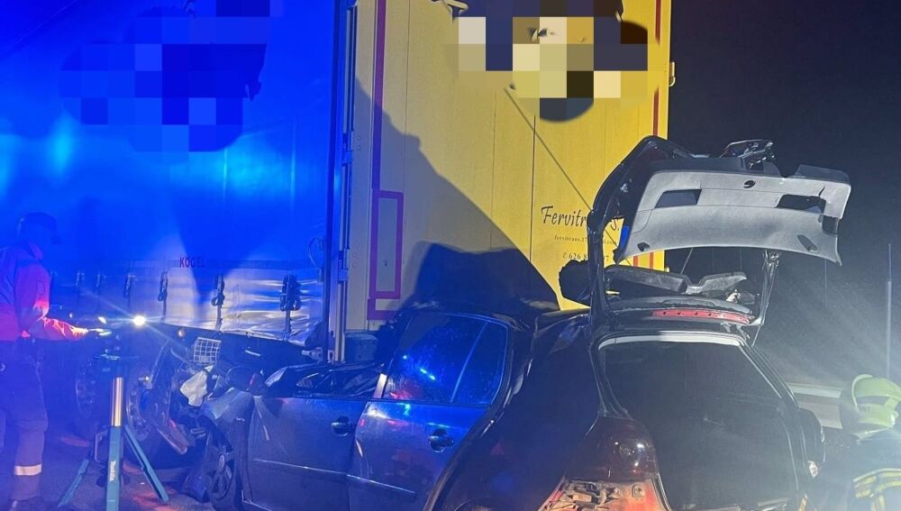 El accidente tuvo lugar poco antes de las ocho de la tarde cuando, por motivos que aún se desconocen, el coche en el que viajaba colisionó por alcance con un camión en el carril sentido Zaragoza. Como consecuencia del accidente el vehículo ha quedado atrapado bajo la base del camión. Los bomberos se han encargado de las tareas de descarcelamiento.