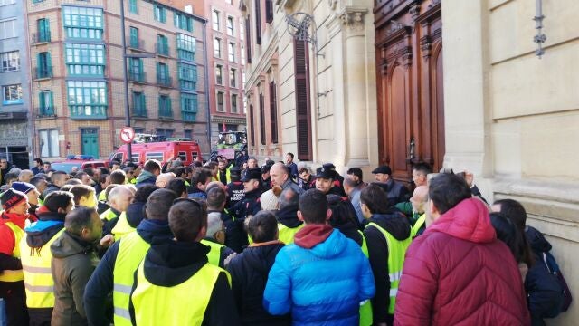 Los agricultores se han concentrado desde primera hora del jueves frente al Parlamento foral. Iniciado el debate, han cruzado desde el Paseo de Sarasate hacia la sede del Legislativo, cortando el tráfico y tratando de acceder al Parlamento, pero la Policía Foral lo ha impedido. Se han vivido momentos de tensión en los que los agentes han tenido que hacer uso de las porras. Posteriormente, la situación se ha tranquilizado, aunque el tráfico permanece cortado.