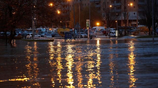 El río Arga se desborda a la altura del puente de curtidores en el barrio de la Rochapea en Pamplona | EFE