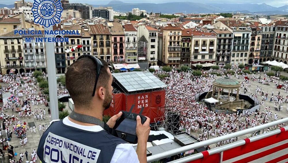 En cuanto al control del espacio aéreo, este es el segundo año que la Policía Nacional acota un vuelo restringido sobre la ciudad de Pamplona para evitar el vuelo no autorizado de drones por parte de particulares.