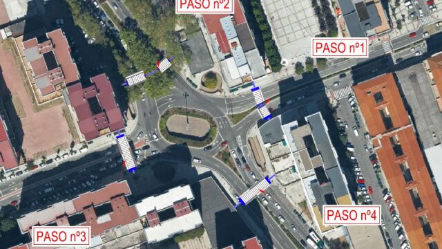 - Obra civil necesaria para la ejecución de los pasos de peatones, incluidos los rebajes e instalación de pavimento podotáctil para garantizar la accesibilidad
