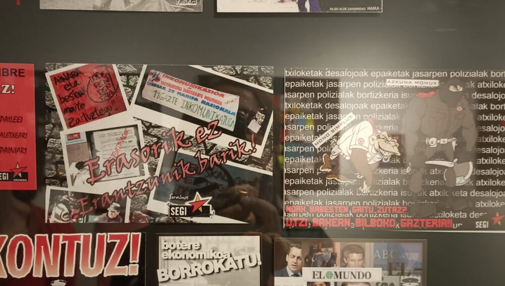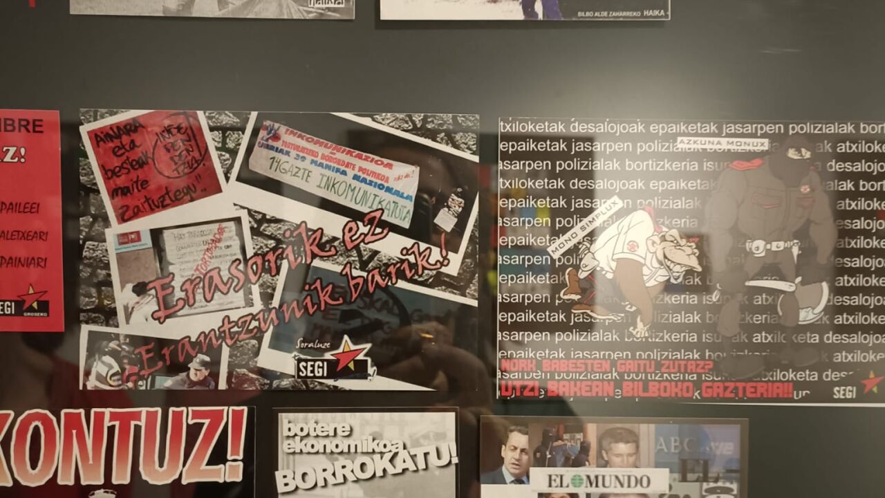 La exposición escogida para este primer aniversario propone una selección de más de 600 pegatinas relacionadas con el odio propagado por grupos extremistas. Las piezas pertenecen a la colección personal de Fernando Iñigo Aristu, que posee un fondo de más de 60.000 pegatinas. Este soporte fue muy popular desde los años 70 como elemento propagandístico y sirve hoy para hacer un relato por la historia del odio, desde la transición hasta la actualidad. Hasta el próximo 17 de julio se puede visitar esta muestra en la que ETA y su entorno tienen un gran protagonismo, si bien hay espacio para otros grupos armados, bandas anarquistas y grupos ultraderechistas de corte neofascista. La izquierda abertzale ha usado recurrentemente pegatinas y cartelería para ocupar el espacio público con sus mensajes.