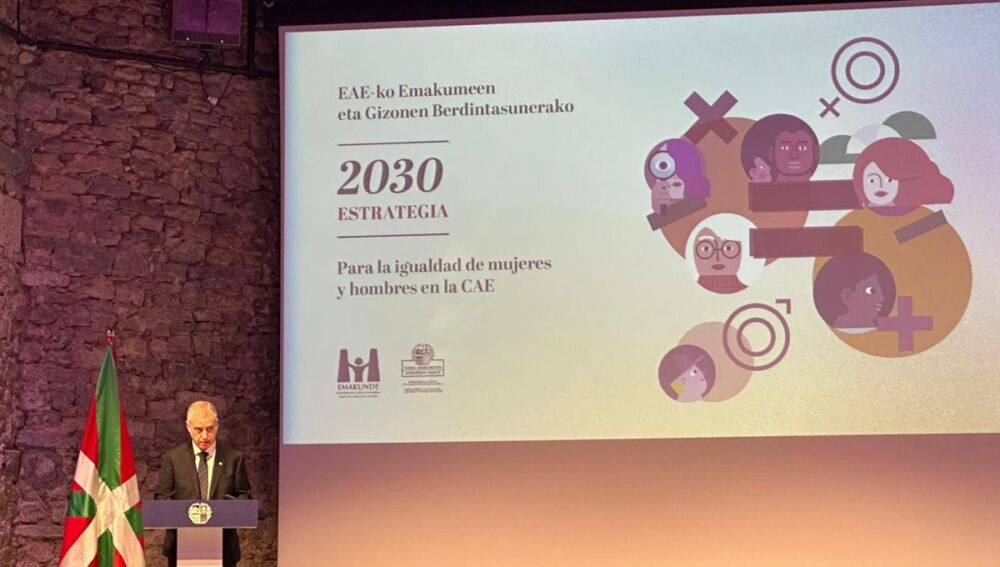 El Gobierno Vasco ha presentado la Estrategia para la Igualdad de Mujeres y Hombres 2030 en un acto liderado por el Lehendakari Iñigo Urkullu, la consejera de igualdad, Nerea Melgosa y la directora de emakunde, Miren Elgarresta.