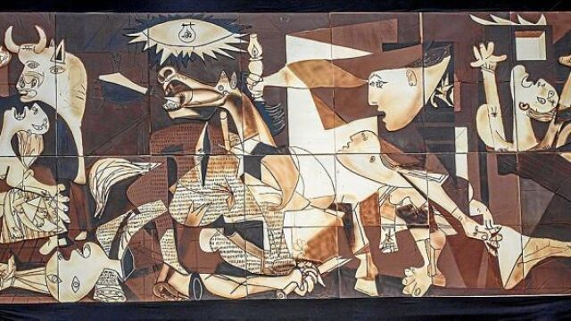 La primera réplica en chocolate del Guernica ya está en la capital gala. El cuadro, en el que Picasso refleja la devastación causada por el bombardeo nazi en la localidad de Gernika, fue creado con chocolate blanco y negro y con leche. Tiene las mismas dimensiones que el lienzo original (7.77 metros de largo x 3,49 de ancho). El Guernica fue pintado y expuesto por primera vez en la Exposición Universal de 1937 en parís, donde el artista español estaba exiliado. Ahora vuelve a su cuna 84 años después.
