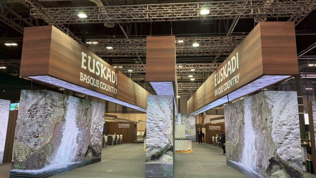 El stand de Euskadi en IFEMA Madrid repite diseño tras haber sido reconocido como Mejor stand institucional en Fitur 2025. En forma de txalaparta, será el lugar de los actos y presentaciones de Euskadi. Hablaremos con sus responsables.